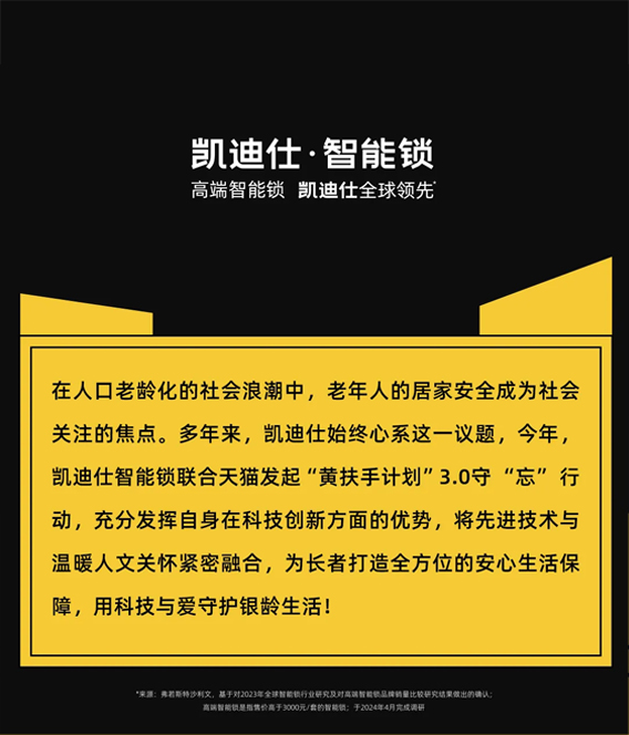 凱迪仕聯(lián)合天貓發(fā)起“黃扶手計劃”守“忘”行動,獲“愛心品牌”榮譽(yù),用科技與愛守護(hù)銀齡生活!